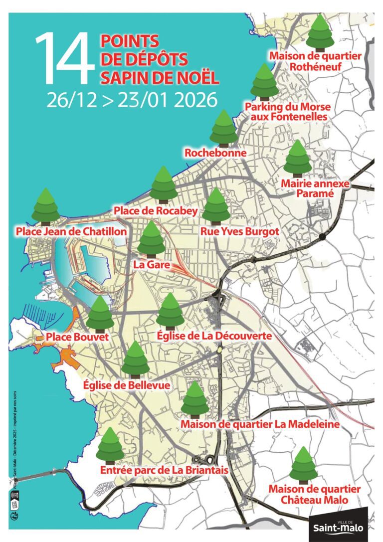 Du 26 décembre 2025 au 23 janvier 2026, le service propreté urbaine de la mairie de Saint-Malo organise la collecte des sapins de Noël, dans
