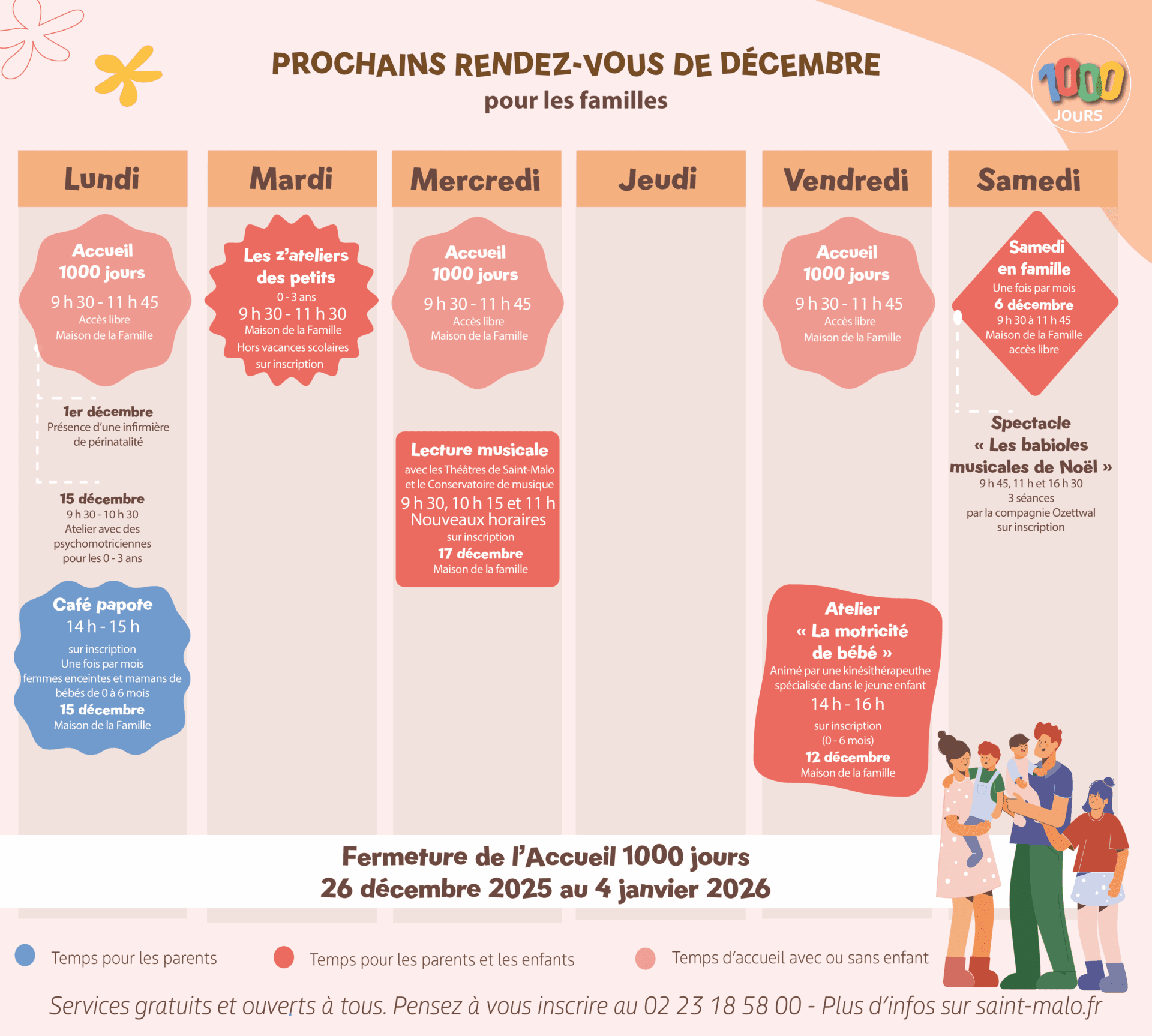 • Fête de fin d’année : fermeture de l’Accueil 1000 jours du 26 décembre 2025 au 4 janvier 2026