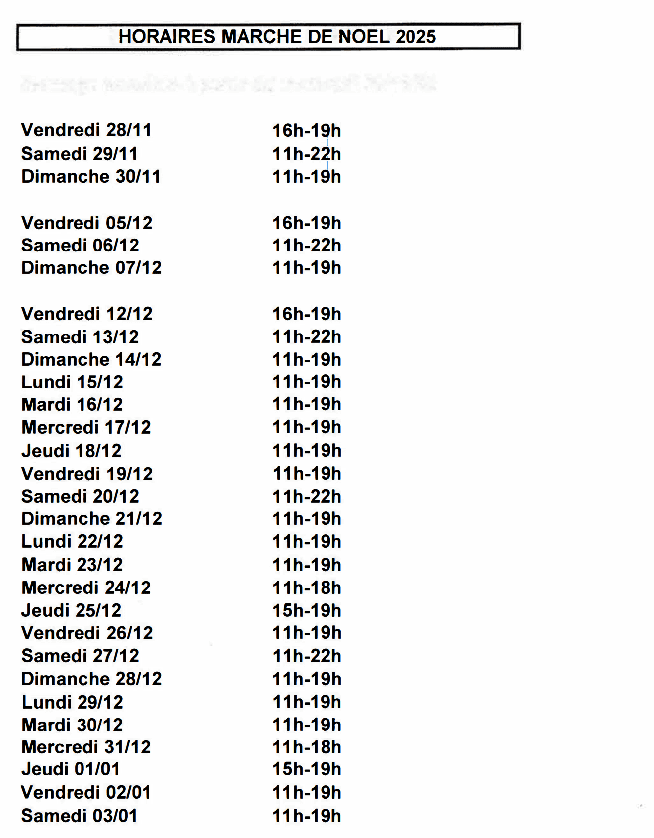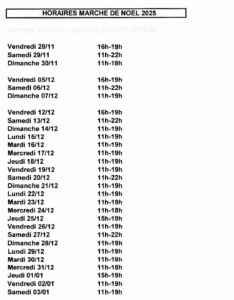 Veuillez svp bien vérifier les dates et horaires du Marché de Noël avant de vous rendre sur place